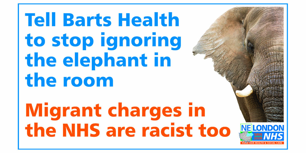 The Board of Barts Health NHS Trust discussed two important reports in July 2020. One confronted racism. One ignored racism. We are calling on Barts Health to stop ignoring the elephant in the room. Migrant charges in the NHS are racist too.