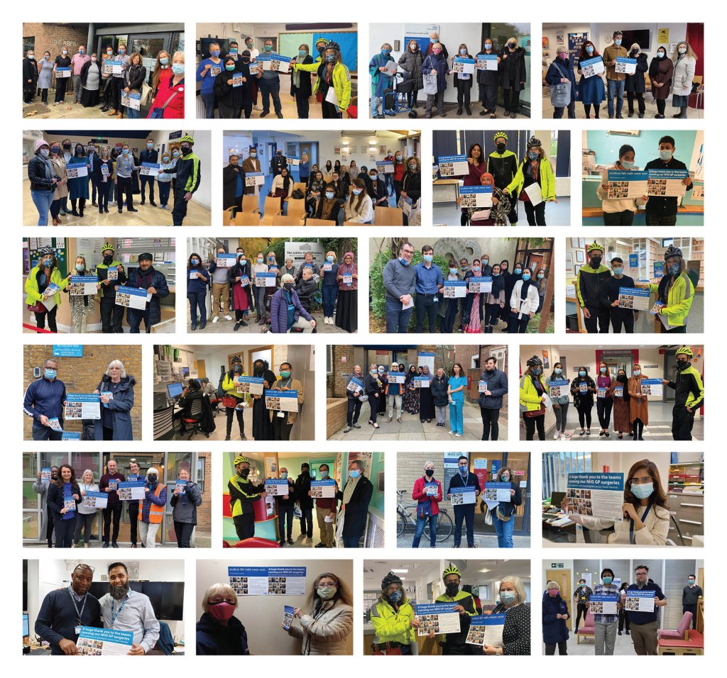 We went to every GP surgery to hand over special ‘thank you’ posters in English and Bengali, featuring selfies from patients.