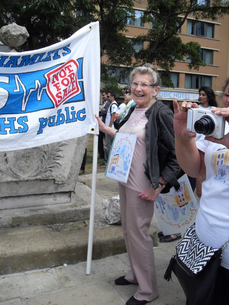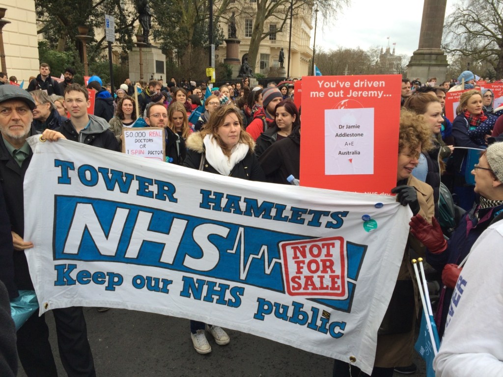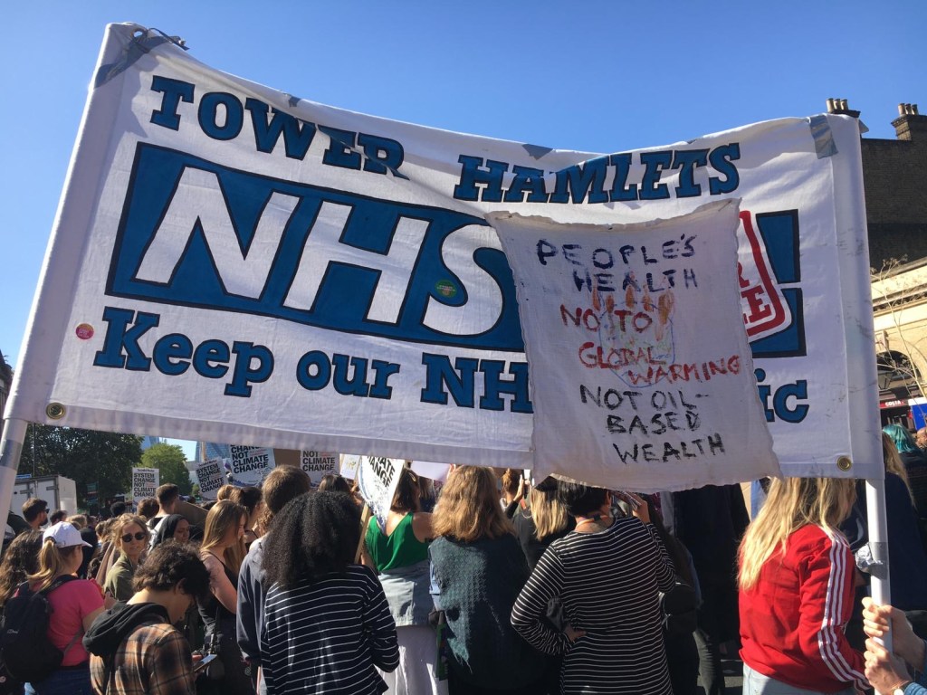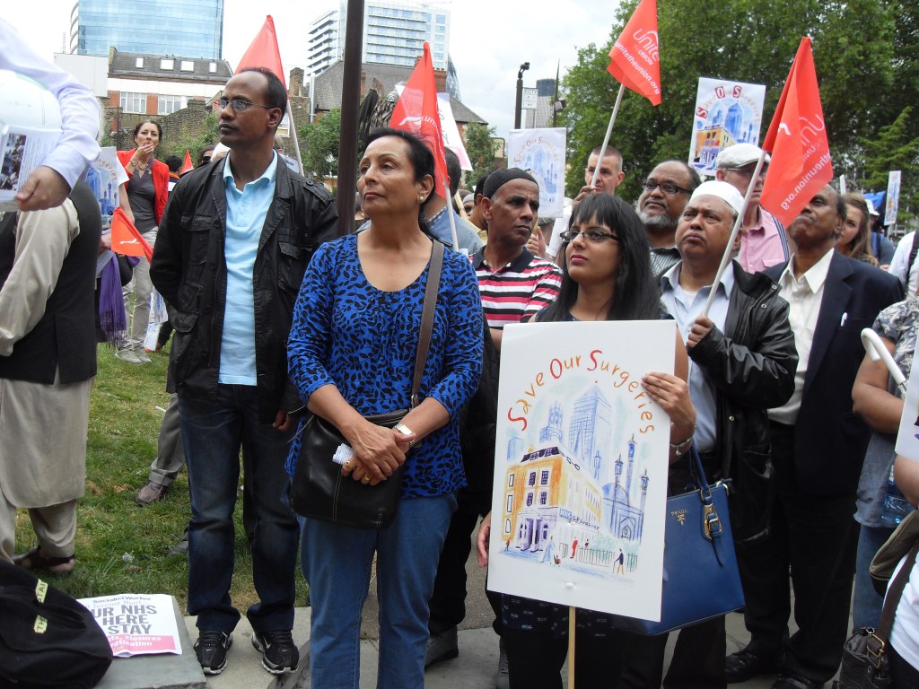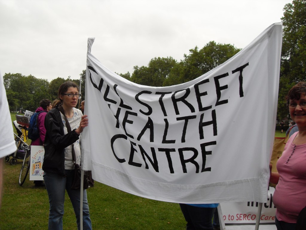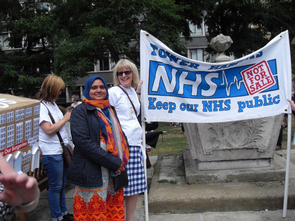 Protesting against the corporate takeover of four Tower Hamlets GP surgeries by Operose Health (a UK subsidiary of the US health giant, the Centene Corporation)