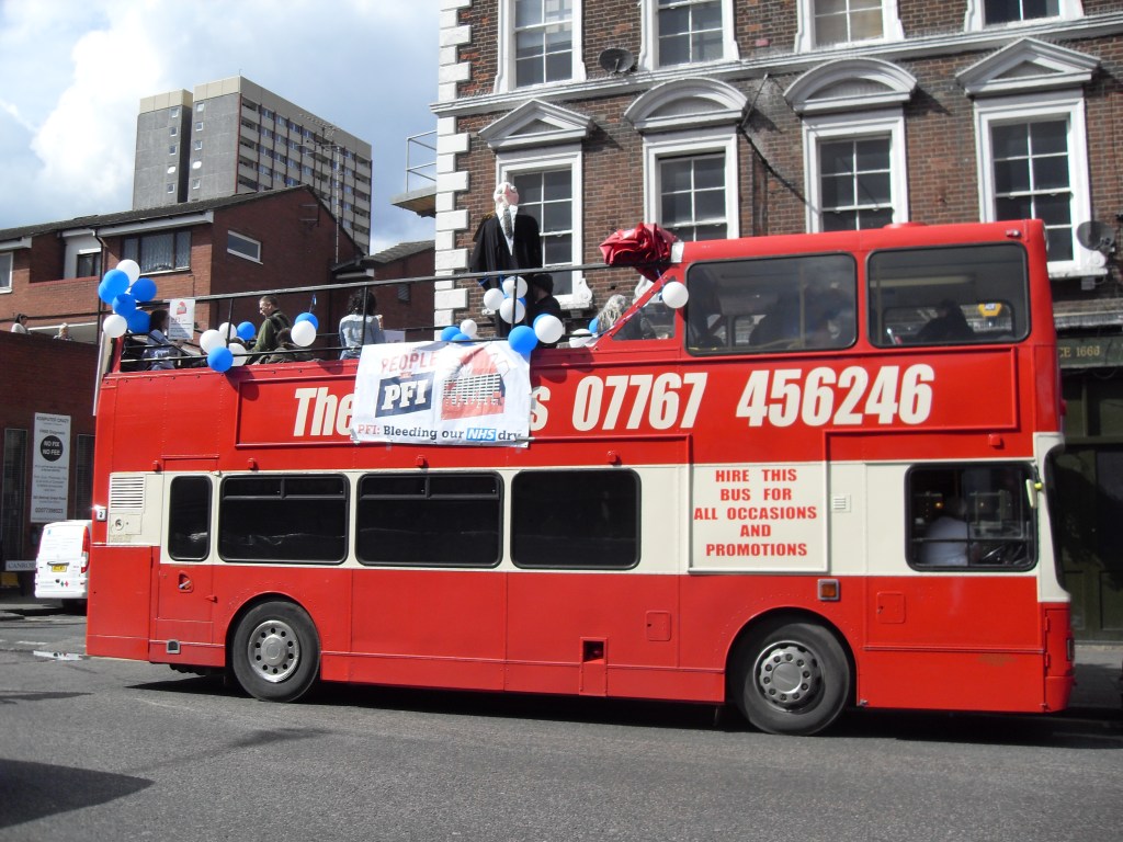 The campaign against PFI: Our campaign included a bus tour of all the Barts Health boroughs to share the scandal of PFI debt at the Trust.