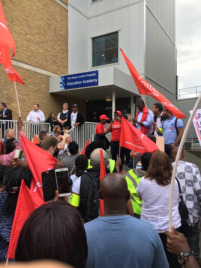 Backing outsourced NHS workers: In 2017, we backed 700 striking outsourced workers at Barts Health NHS Trust.